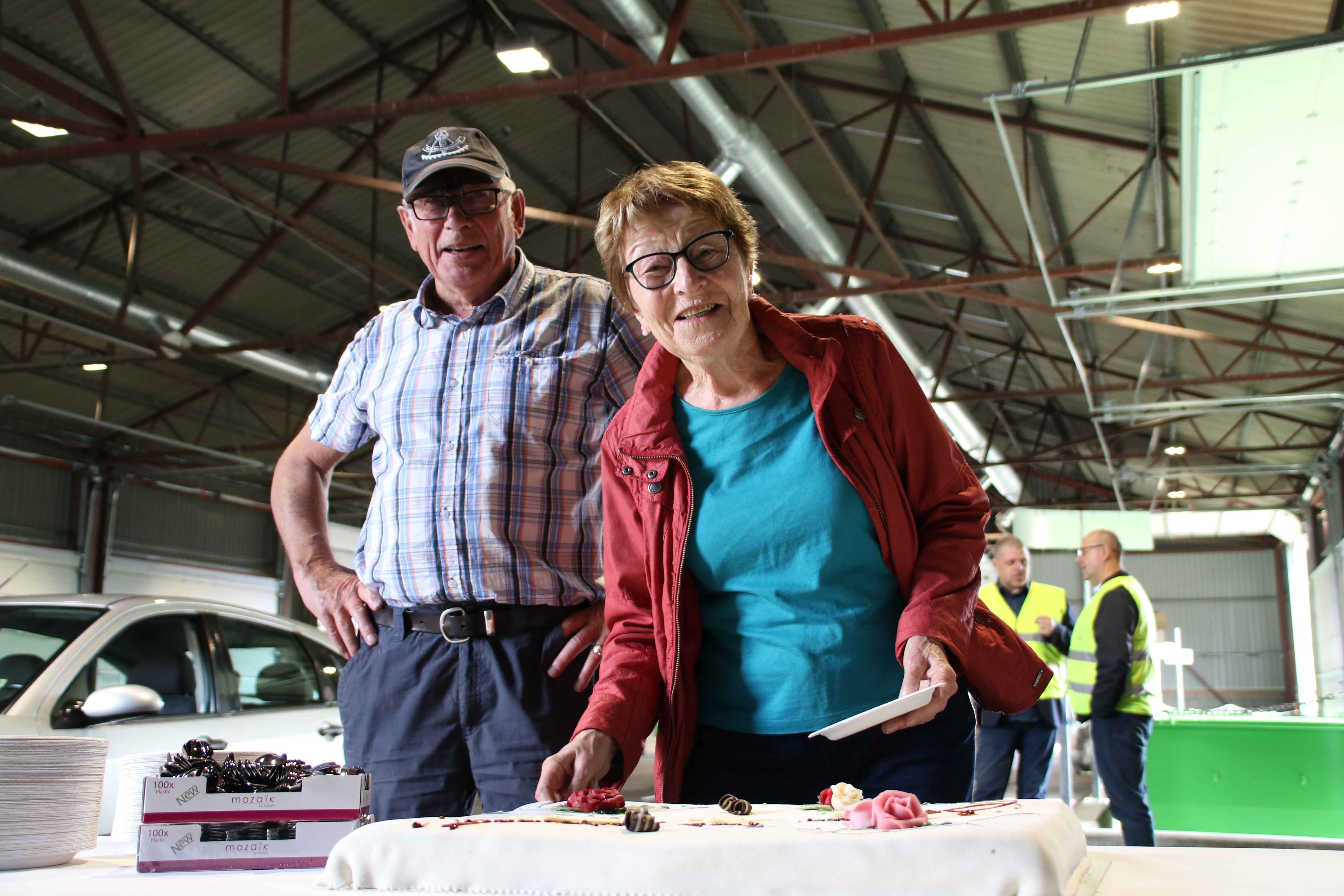 Borghild og Willy Rolness var noen av de første kundene som var innom det nye kundetorget på Stangnes.