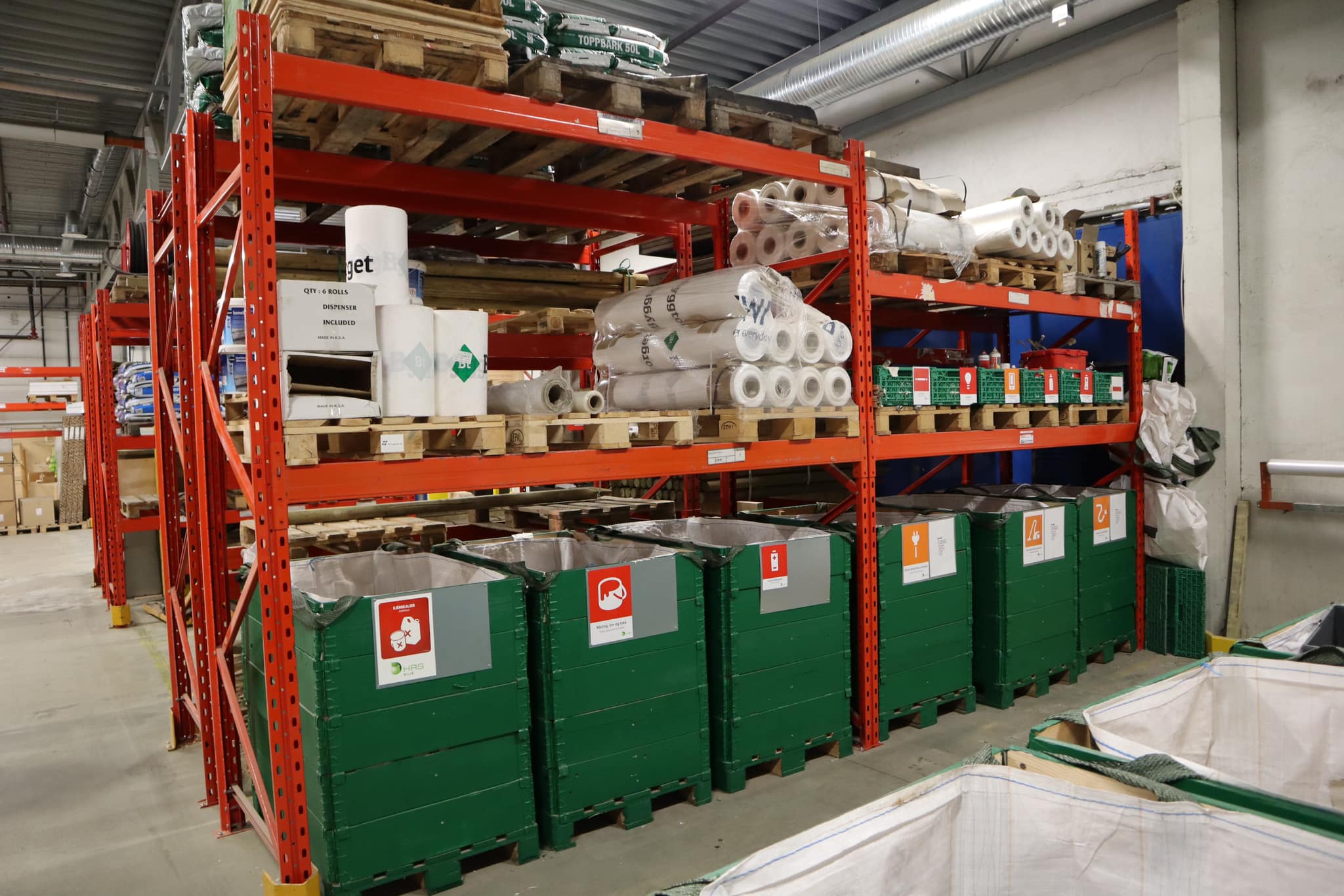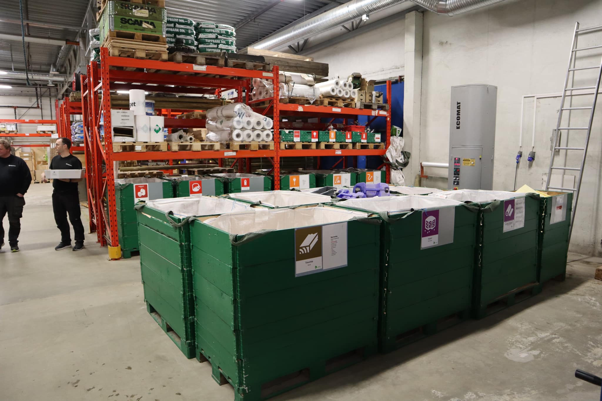 Hos Byggtorget i Narvik har de opprettet et eget miljøtorg inne på lageret. Her finnes det en beholder for de aller fleste avfallstyper som oppstår innenfor byggets fire vegger. Beholderne er godt merket med både symbol og tekst, og området er ryddig og fint.