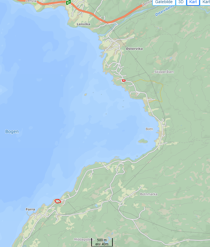 Fra 31. august forsvinner hytterenovasjonspunktet på utsikten i Veggen. Abonnenter som har benyttet seg av dette returpunktet skal nå benytte punktene i Forra og Østervik. Punktene er markert med rødt i kartutsnittet nedenfor.