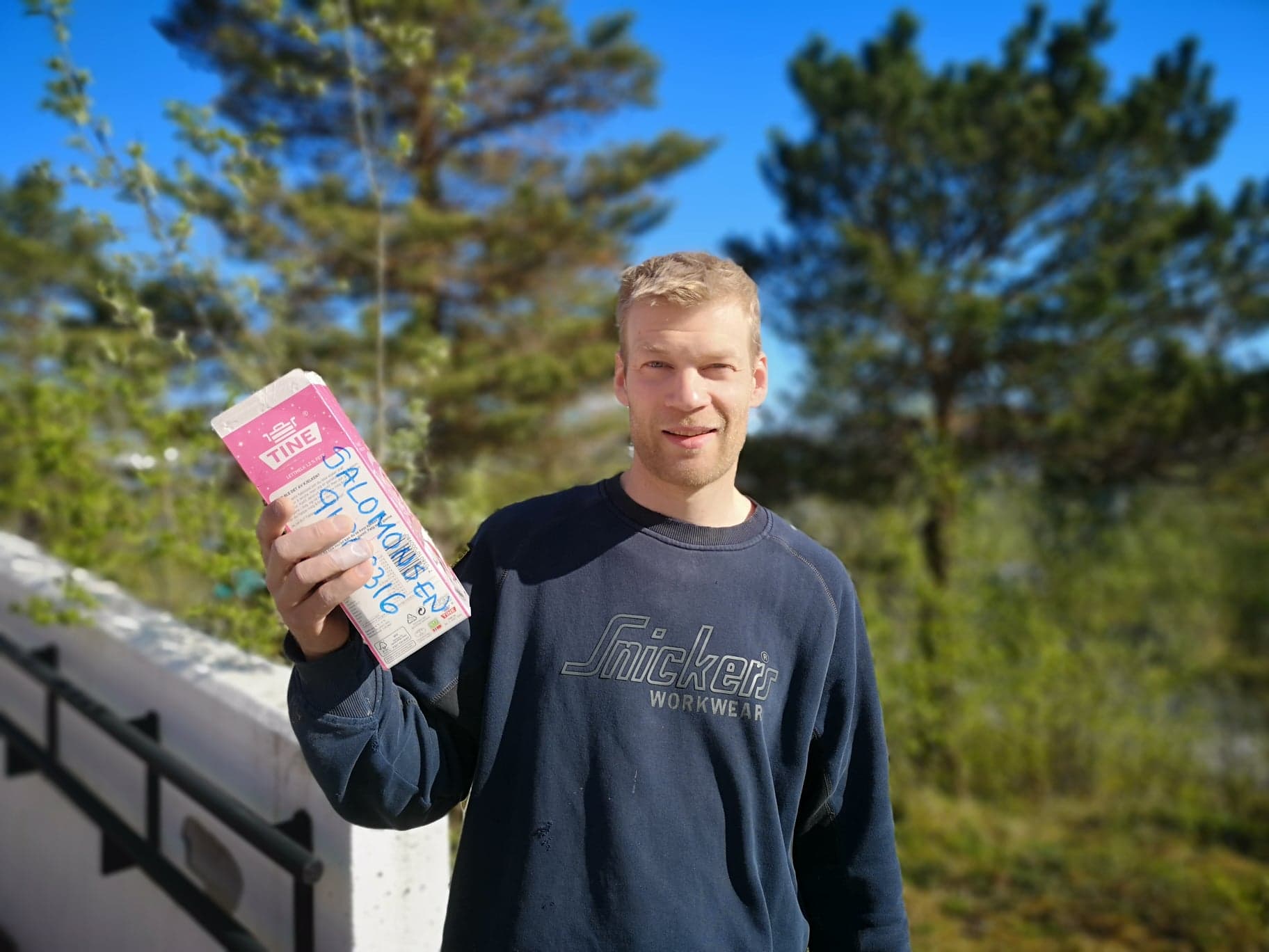 Ole Johan Salomonsen vant 10.000 kroner på Returkartonglotteriet. Det eneste han gjorde var å skrive navn og nummer på drikkekartongene og levere de inn på et returpunkt. Vi gratulerer!
