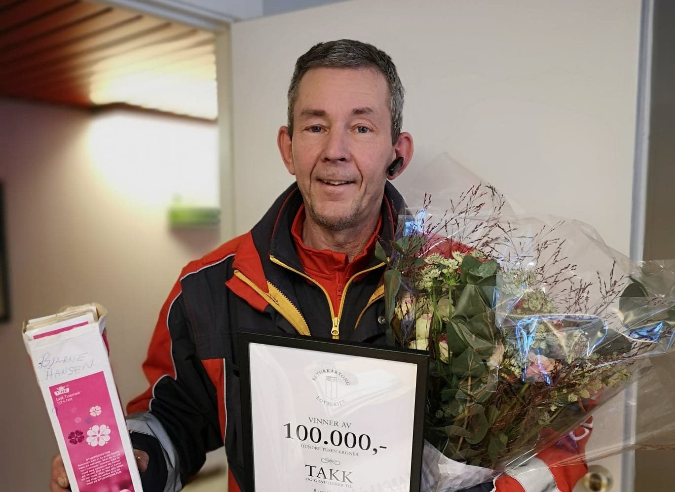 – Når det kommer til returkartonglotteriet, har vi vært så heldig at vi jevnt over har hatt vinnere fra vårt område. Men så vidt jeg vet, er det første gang vi har hatt en vinner som har fått 100.000 kroner. Og det er jo ekstra artig, forteller Dalhaug.